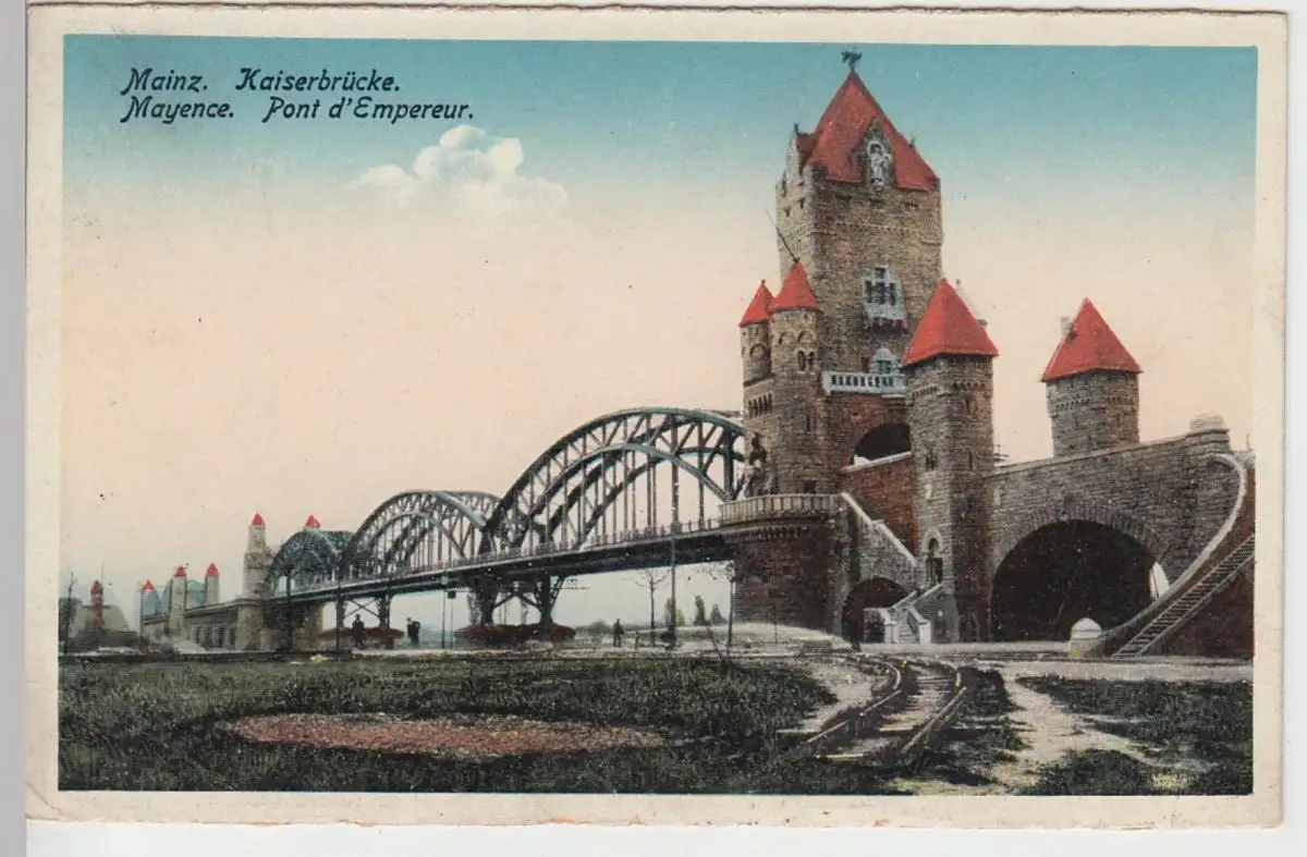 - (85020) Ansichtskarte, postcard, PPC - Mainz, Kaiserbrücke 1925