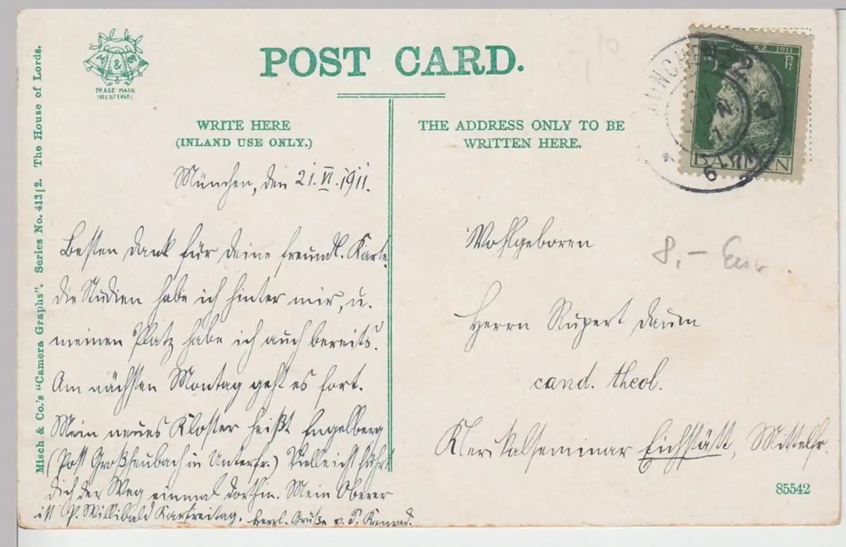 Diese Postkarte wurde von meinem Opa geschrieben und versendet. Ein Stück Erinnerung von fast 100 Jahren