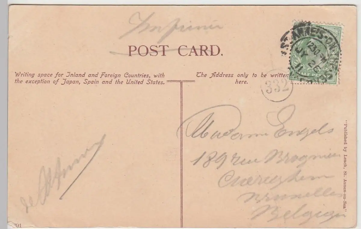 - (85084) Ansichtskarte, postcard, PPC - St. Annes-On-Sea, South Promenade a. Band Stand, 1911