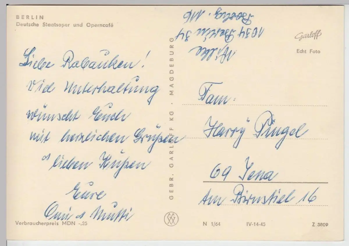 (86223) AK Berlin DDR, Deutsche Staatsoper und Operncafé 1964