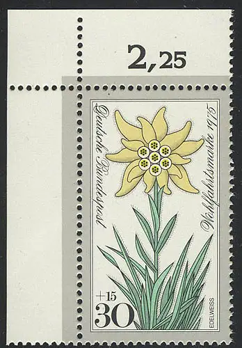 867 Blumen 30+15 Pf Edelweiß ** Ecke o.l.
