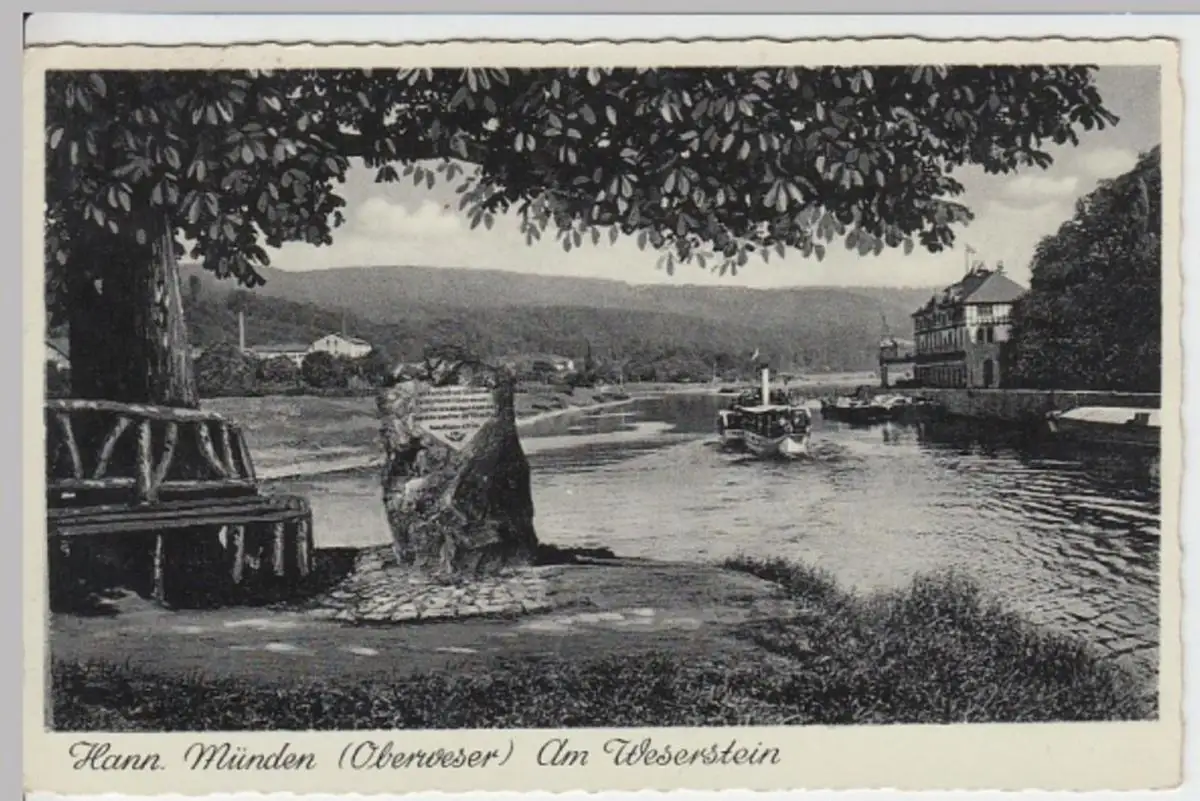 - (8771) Ansichtskarte, postcard, PPC - Hann. Münden, Weserstein 1938