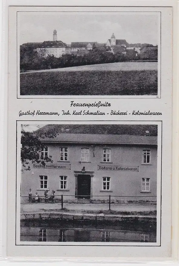 88873 Mehrbild Ak Frauenprießnitz Gasthof Herrmann Bäckerei, Kolonialwaren
