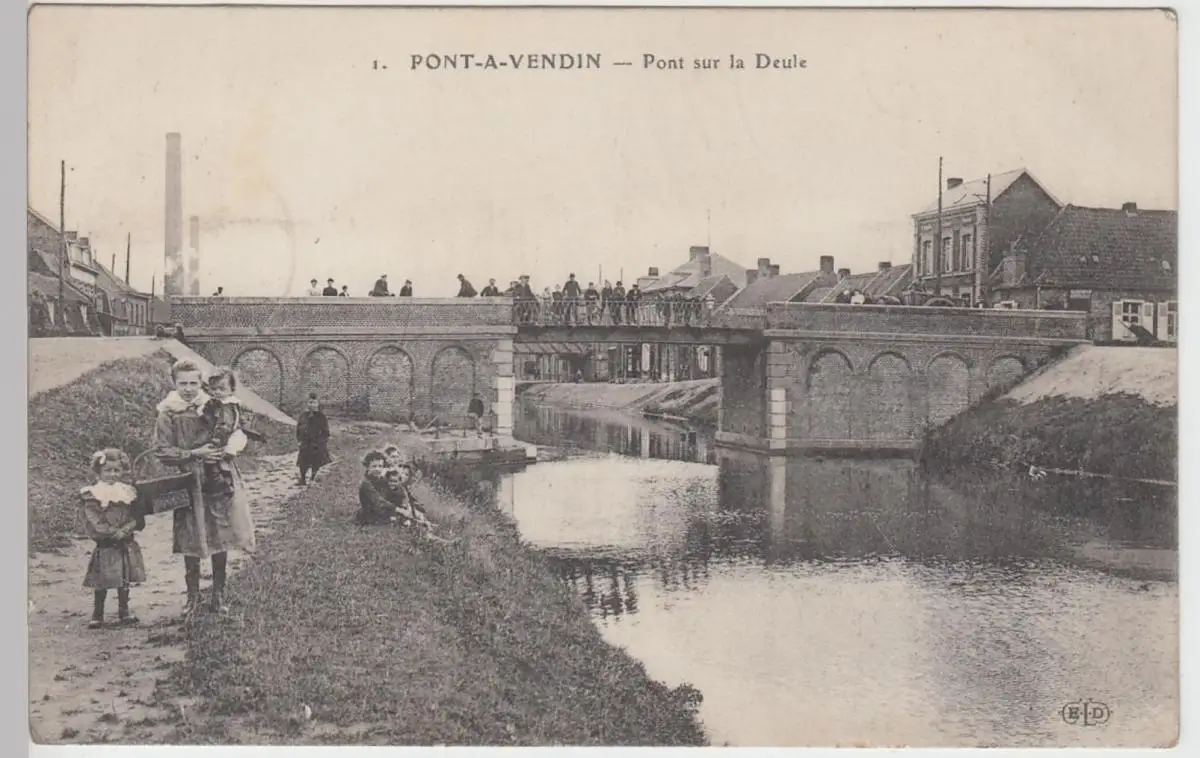 - (89314) Ansichtskarte, postcard, PPC - Pont à Vendin, Pont sur la Deûle, Feldpost 1914