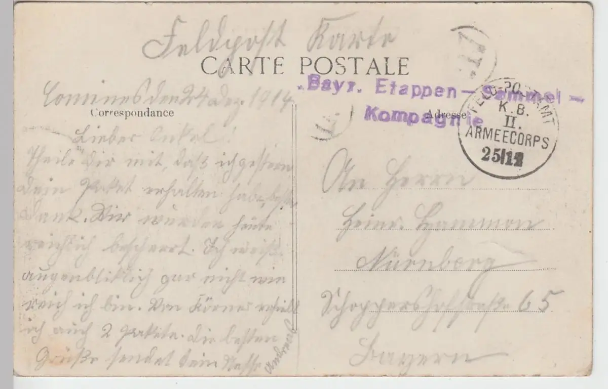 - Feldpost: Bayr. Etappen Sammel Kompanie, K. B. 2. Armeekorps