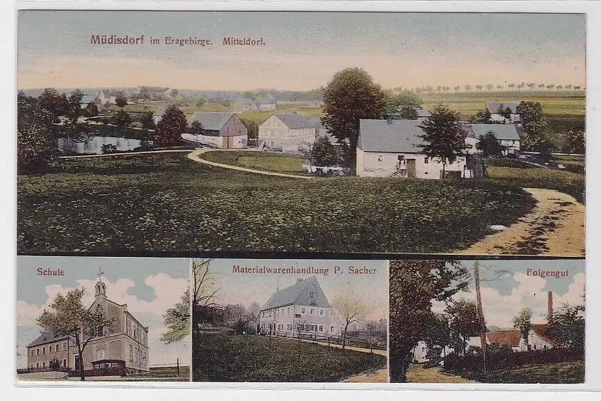 89419 Mehrbild Ak Müdisdorf Schule, Materialwarenhandlung usw. 1916