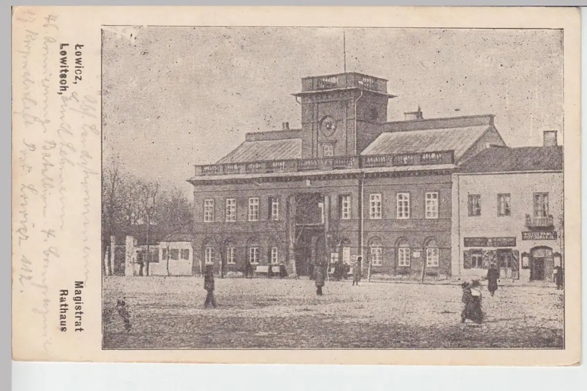 - (89481) Ansichtskarte, postcard, PPC - Lowitsch, Łowicz, Magistrat, Feldpost 1915