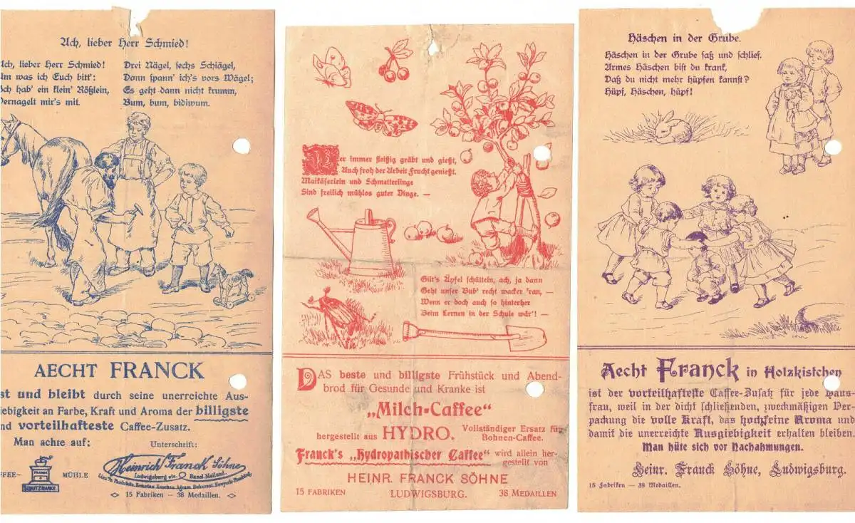 9 St. Litho Rechnung Franck Kaffee Ersatz Kinder Rätsel um 1905 !