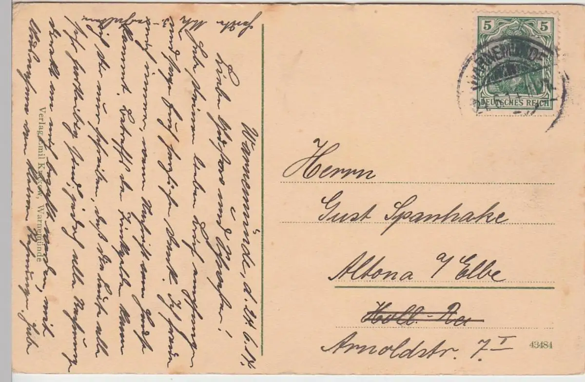- (90448) Ansichtskarte, postcard, PPC - Warnemünde, Strand, 1914