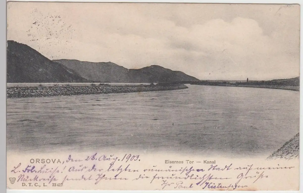 - (90511) Ansichtskarte, postcard, PPC - Orșova, Eisernes Tor, Kanal, 1903
