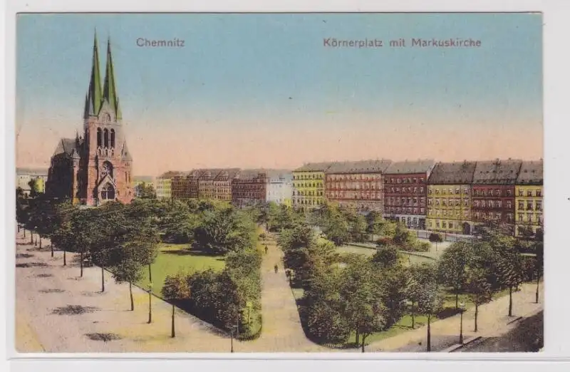 905447 Ak Chemnitz Körnerplatz mit Markuskirche um 1920