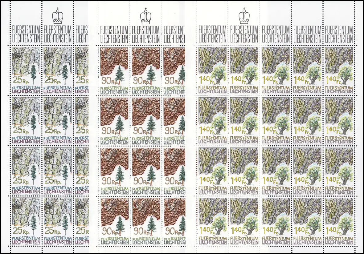 913-915 Baumrinden 1986, 3 Werte, Kleinbogen-Satz **