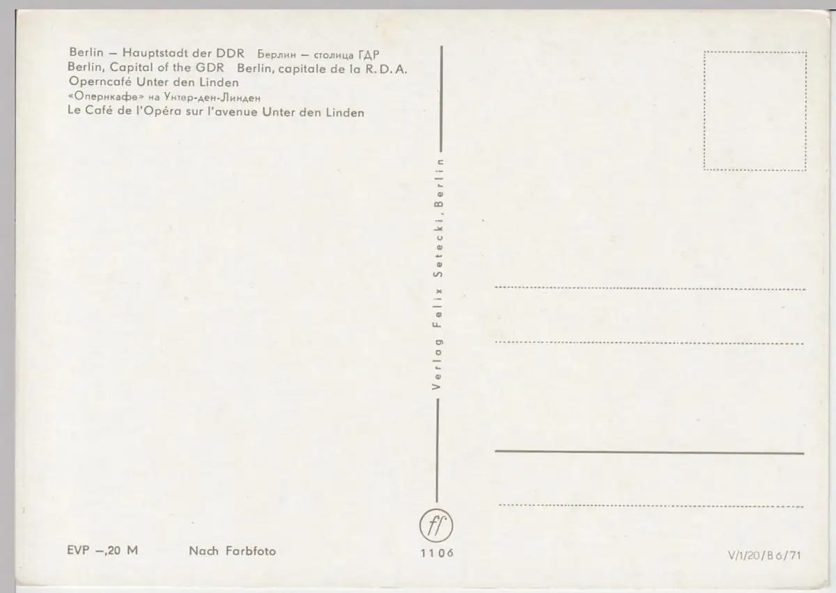 (91969) AK Berlin, Operncafé Unter den Linden, DDR 1971