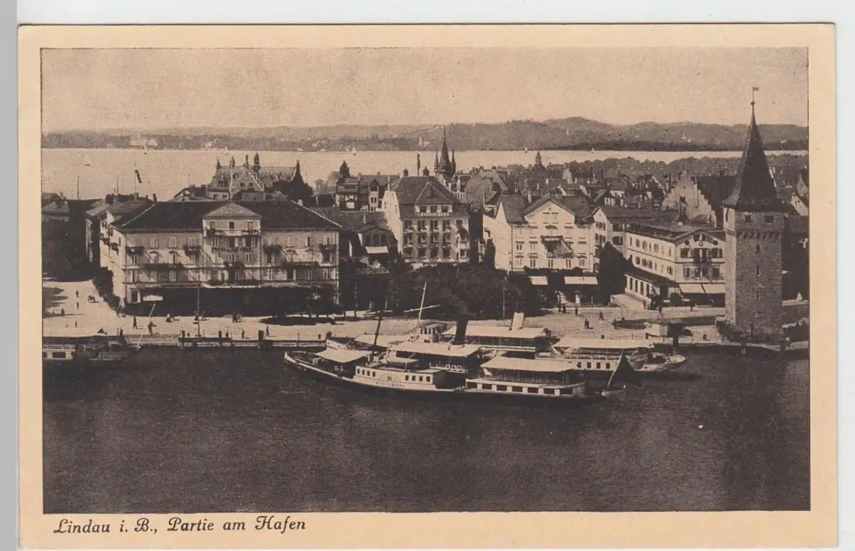 - (92752) Ansichtskarte, postcard, PPC - Lindau im Bodensee, Partie am Hafen vor 1945
