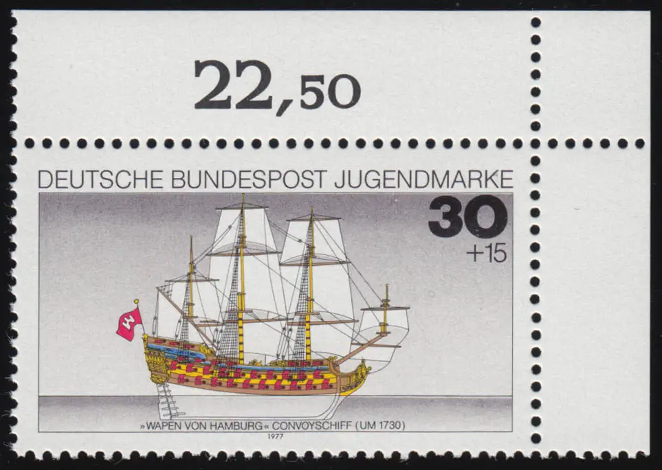 929 Jugend Schiffe 30+15 Pf ** Ecke o.r.