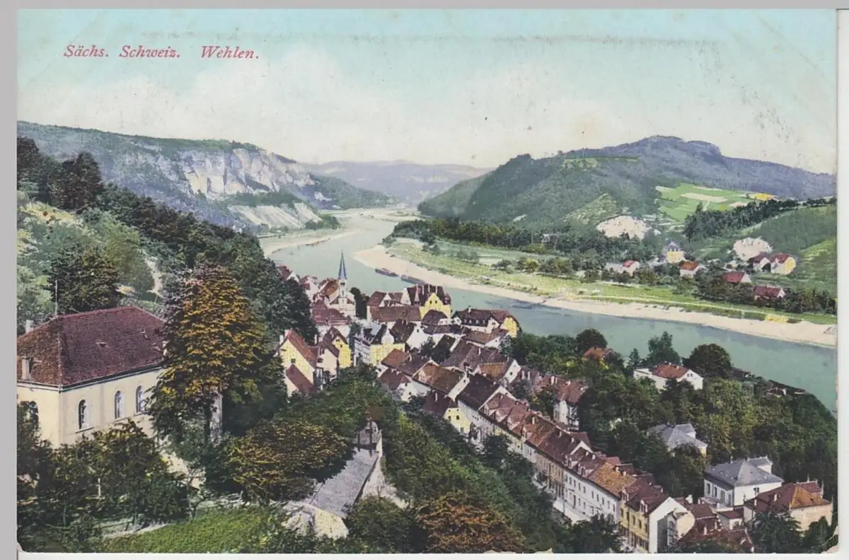 (93209) AK Stadt Wehlen, Sächs. Schweiz, Panorama, vor 1945