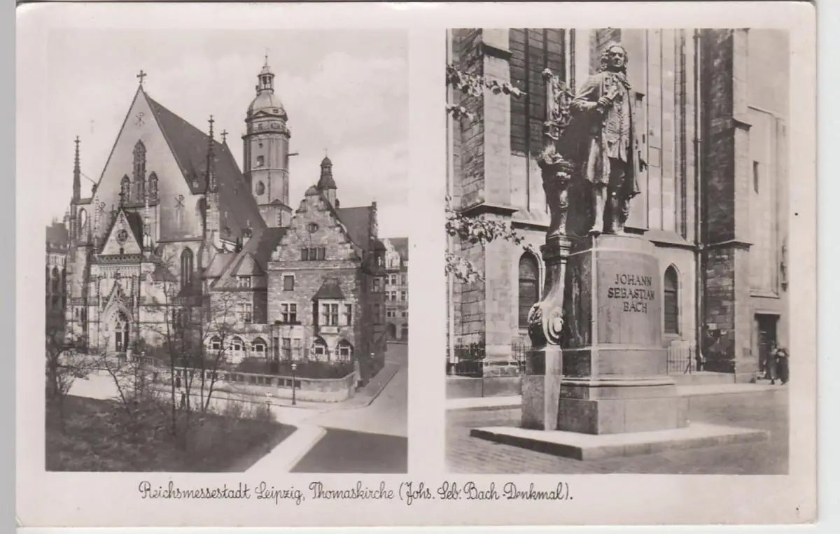 - (93225) Foto Ansichtskarte, postcard, PPC - Leipzig, Thomaskirche, Bach Denkmal 1941