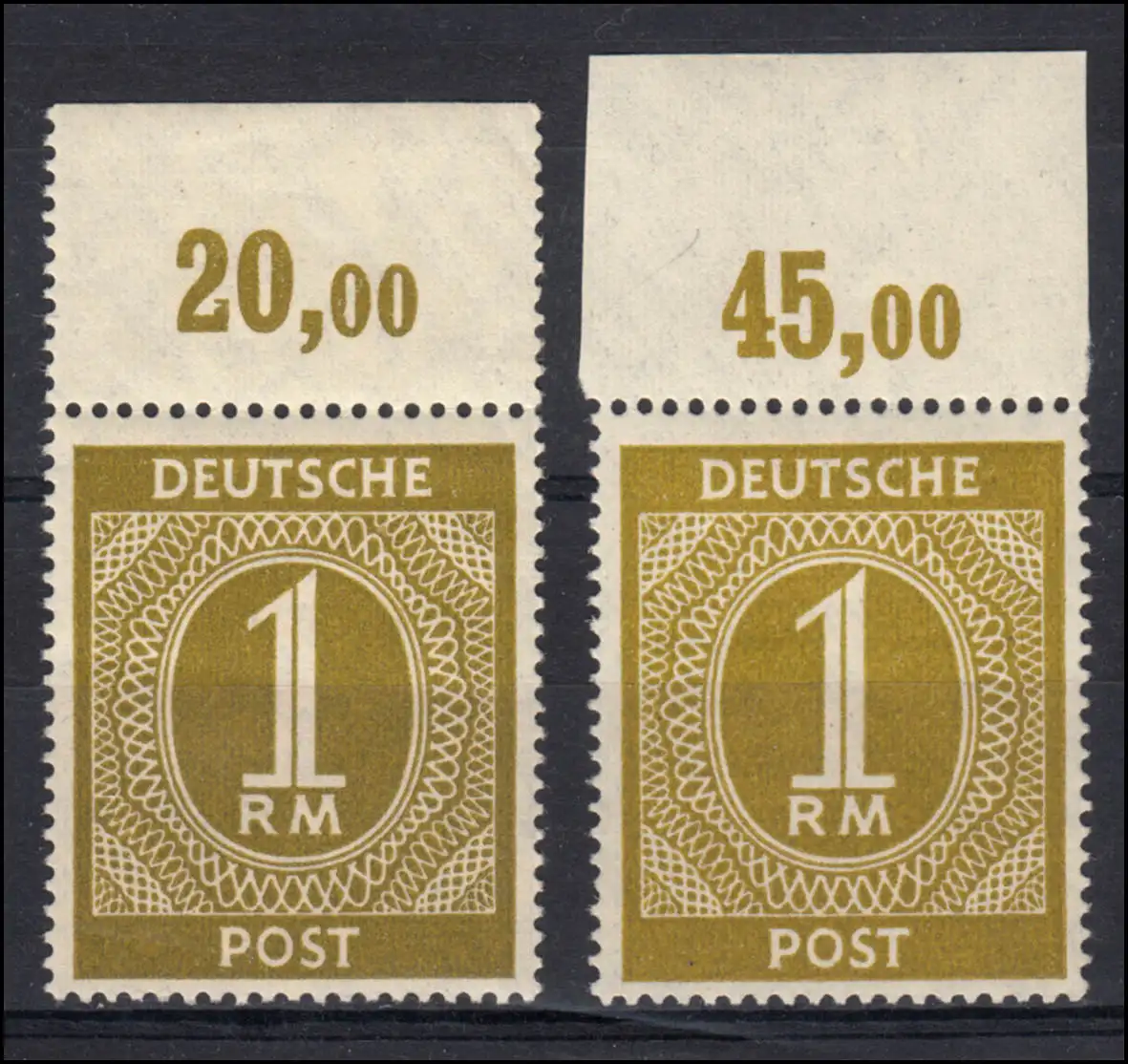 937 Kontrollrat Ziffer 1 RM: je mit Oberrand durchgezähnt / nicht dgz., beide **