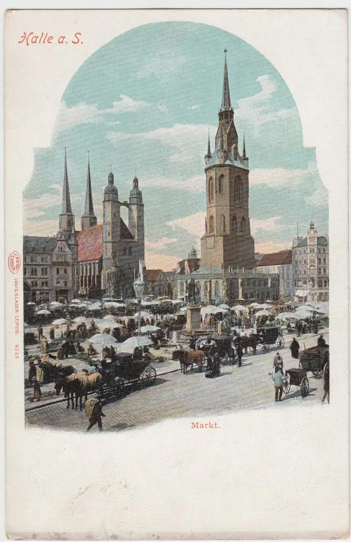 - (93977) Ansichtskarte, postcard, PPC - Halle a.S., Markt um 1900