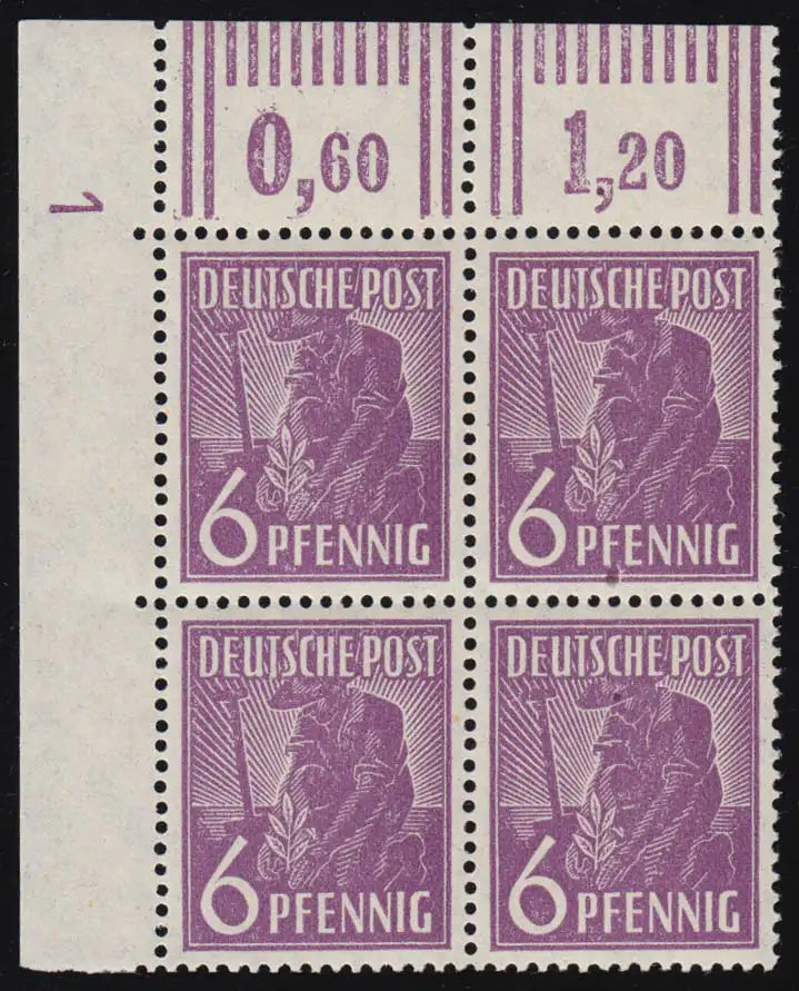 944DZ Kontrollrat II 6 Pf. ER-Vbl. oben links mit Duckerzeichen DZ 1 positiv **
