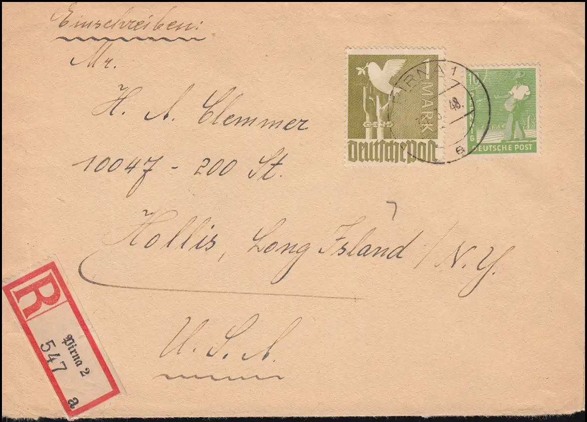 946+959 Kontrollrat II - MiF auf R-Brief PIRNA 30.3.1948 in die USA
