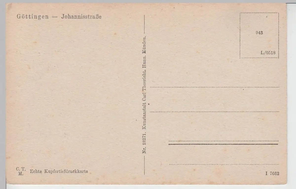 - (95074) Ansichtskarte, postcard, PPC - Göttingen, Johannisstraße, St.-Johannis-Kirche, vor 1945