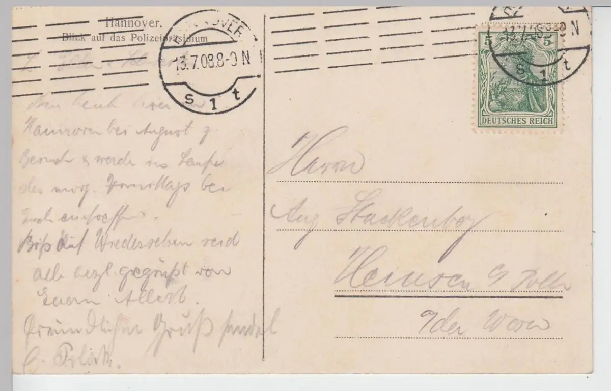 - (95104) Ansichtskarte, postcard, PPC - Hannover, Polizeipräsidium 1908