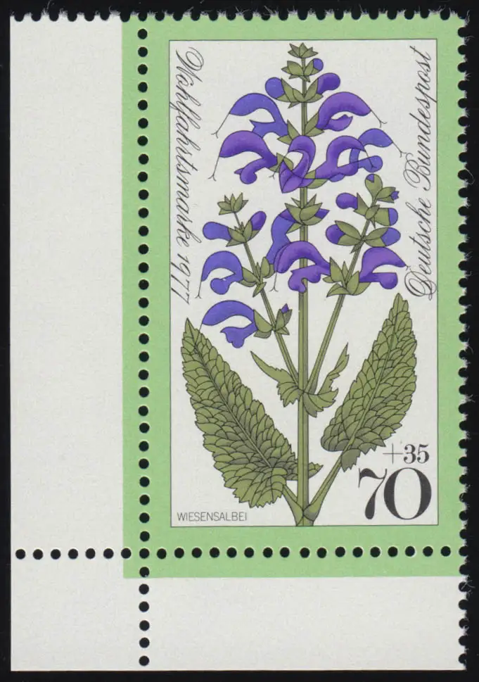 952 Wiesenblumen 70+35 Pf Wiesensalbei ** Ecke u.l.