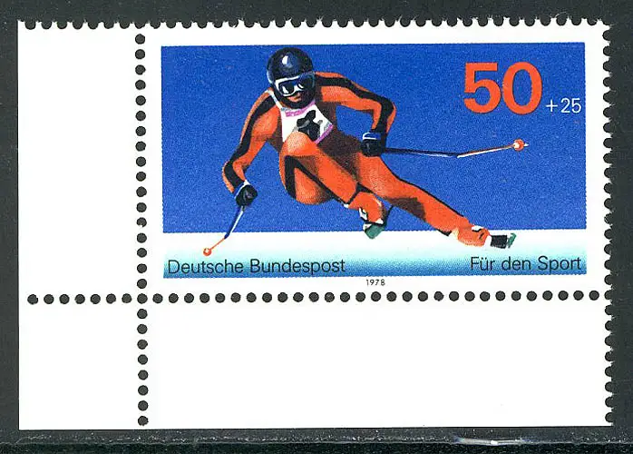 958 Sporthilfe 50+25 Pf Abfahrtslauf ** Ecke u.l.