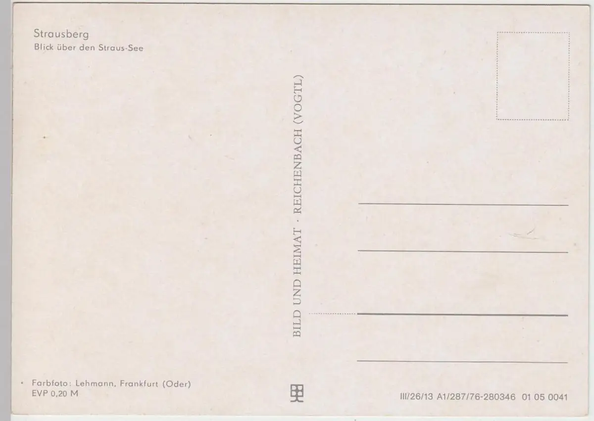 - (96479) Ansichtskarte, postcard, PPC - Strausberg, Blick über den Straus-See, 1976