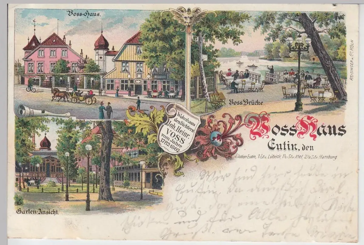 (97657) AK Eutin, Voss Haus, Garten, Voss Brücke 1899
