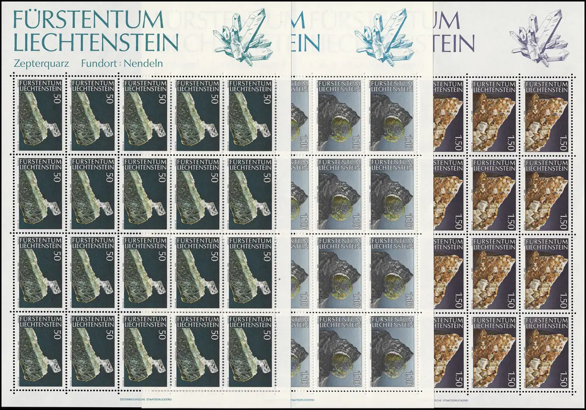 981-983 Mineralien - Zepterquarz, Pyritkugel, Calcit, Kleinbogen-Satz **