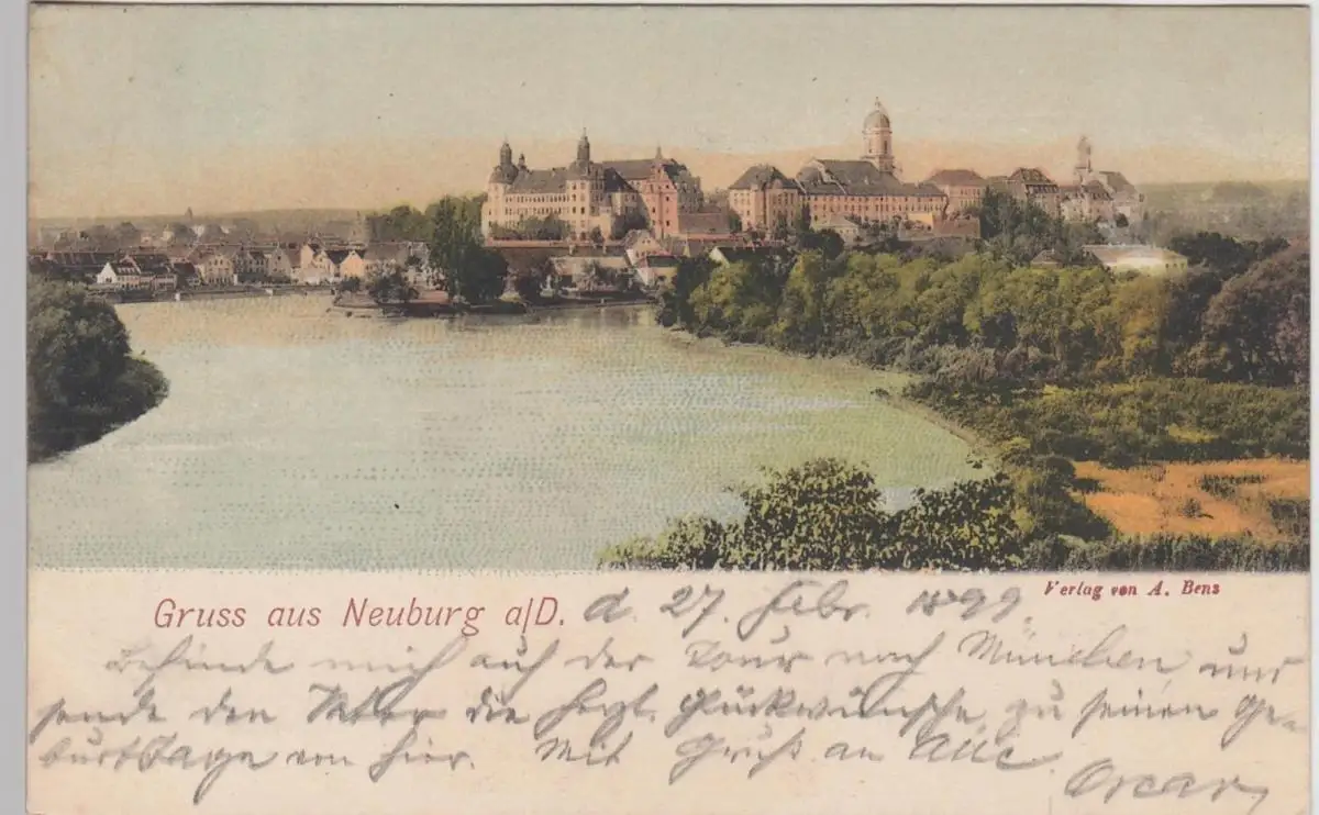 - (98100) Ansichtskarte, postcard, PPC - Gruss aus Neuburg a.D., Panorama, 1899
