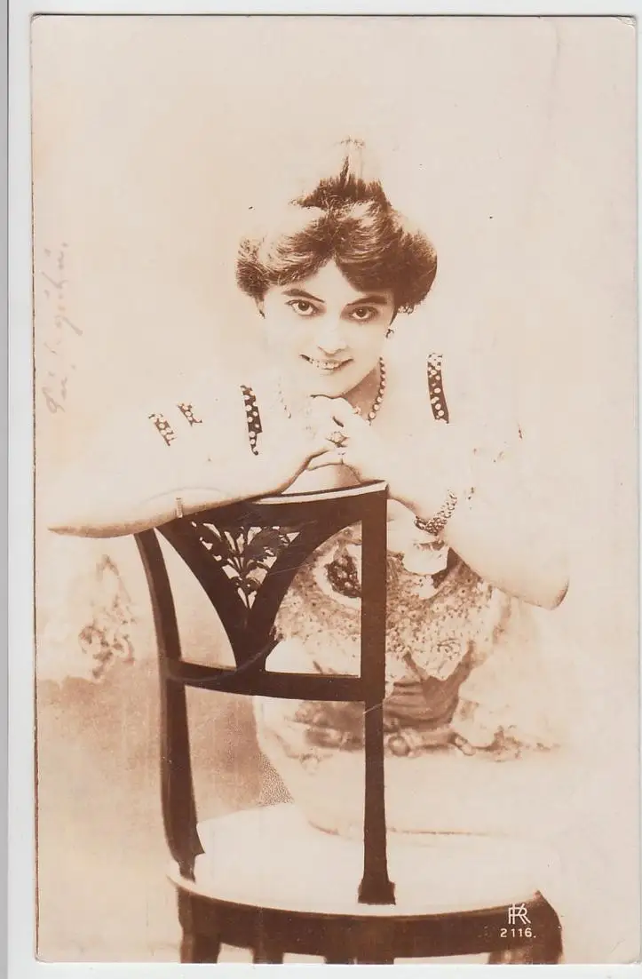 (98399) orig. Foto junge Frau auf Stuhl, 1906