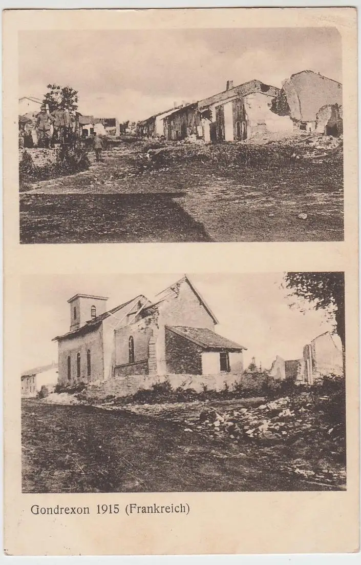 - (98486) Ansichtskarte, postcard, PPC - Gondrexon, zerstörter Ort 1.WK 1915