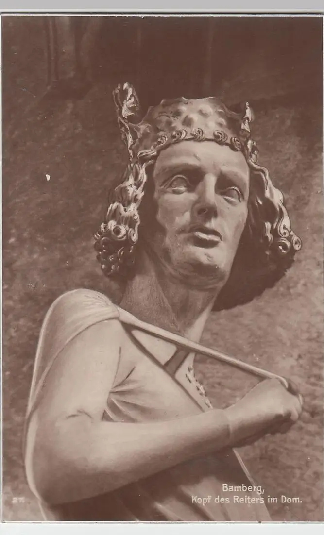 - (98995) Foto Ansichtskarte, postcard, PPC - Bamberg, Reiter im Dom, Kopf, 1920er