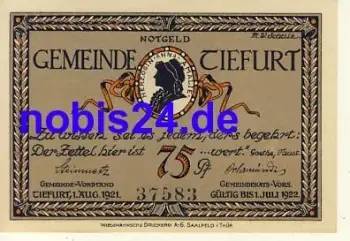 99427 Tiefurt Notgeld 75 Pfennige um 1920