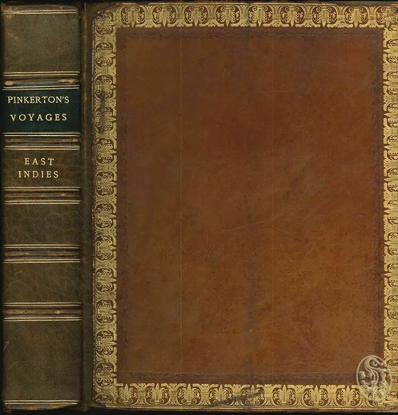 Bemerkungen: Brunet IV, 667; Graesse V, 300 - John Pinkerton (1758-1826), schottischer Antiquar, Kartograph, Autor, Numismatiker und Historiker. Dieser Band Nr. 10 ist Indien gewidmet. Hindostan Sir Thomas Roe, Bernier`s Voyage to the East Indies, Extract from Tavernier`s Voyages, Alexander Hamilton: A New Account of the East Indies, Henry Lord: A Discovery of two Foreign Sects in the East Indies, Francis Buchanan: A Journey from Madras trough the Countries of Mysore, Canara, and Malabar. Taf.: 1: Tombs of Gazipoor, 2. Tomb at Djionpoor, 3. Chouragautchy near Berhampore, 4. Fort Gwalior, 5. N. E. View of the Cotsea Bhaug on the River Jumna. Delhi. 6. A Woman of Distinction, A Chittery, A Dybuck. 7. Jungeira Pagoda at Sultan Gunge. 8. A Woman of the Lower Orde, A Bombay Sepoy, A Grass Cutter. 9. Ramnugur near Benares on the River Ganges.10. Entrance to Chunarghur. 11. Mausoleum of Kausim Solemaneeat Chunar Gur.12. The Cuttera at Muxadavad. 13. Mootyjernah or the Shower of Pearls near Rajhmahal. Hindustan. 14. Government House at Malacca. 15. Draw Bridge at Malacca. 16. The Great Pagoda at Tanjore. 17. The Chalee Saloon at Allahabad.