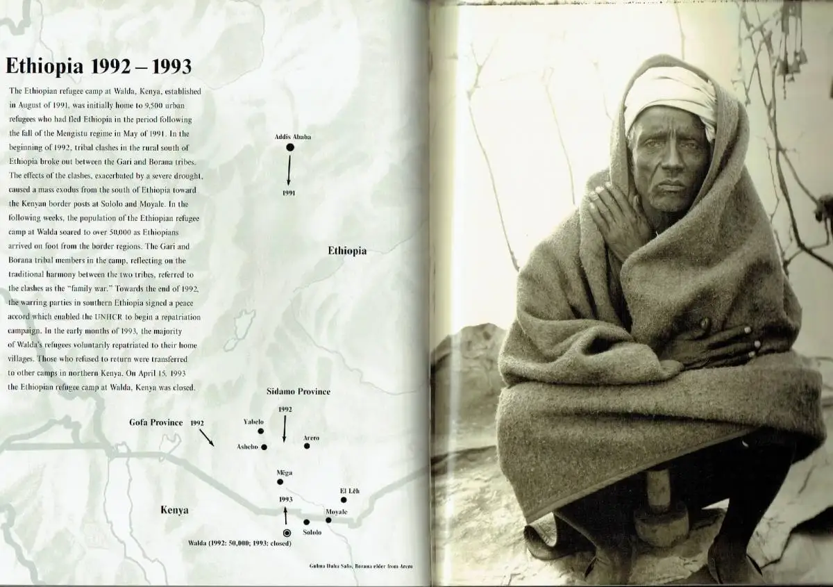 sehr guter Zustand, geringe Gebrauchs- und Alterungsspuren: Schutzumschlag gering defekt, Meine erste Reise in das sudanesische Flüchtlingslager, an der nordwestlichen Grenze von Kenia mit dem Sudan gelegen, erfolgte an Bord eines Flugzeugs des Hochkommissariats für Flüchtlinge der Vereinten Nationen (UNHCR) von Nairobi aus. Obwohl diese Reise fast vier Jahre zurückliegt, ist sie mir sehr lebhaft in Erinnerung geblieben; sie hat die Art und Weise geprägt, in der ich seither die Flüchtlingsgemeinden Afrikas dokumentiert habe. Wir waren in der Maschine zu zehnt: Mitglieder von Hilfsorganisationen, zwei Journalisten und ein Kameramann. Bevor wir aufbrachen, wurden wir kurz informiert über das, was wir sehen würden. In der Kühle und Behaglichkeit Nairobis war es schwer, sich das rauhe, abgelegene Gebiet der nördlichen Wüste vorzustellen. Der zuständige Sprecher der Vereinten Nationen sprach in besänftigenden Tönen über die 25 000 Flüchtlinge in dem Lager. Besonders verweilte er auf den „Fakten, die die „Minderjährigen ohne Begleitung" („Unaccompanied Minors") betrafen. Diese „Minderjährigen ohne Begleitung" waren eine Gruppe aus fast 12 000 Jungen im Alter von acht bis 18, die aus dem südlichen Sudan in das angrenzende Äthiopien verbracht worden waren, um „unterrichten" zu werden. Eigentlich wollte er damit sagen, daß die Jungen von Mitgliedern der Sudanesischen Volksbefreiungsarmee (SPLA) entführt und nach Äthiopien gebracht worden waren, wo sie als Soldaten ausgebildet wurden, um später im Krieg gegen die islamisch dominierte sudanesische Regierung eingesetzt zu werden ..." (Fazal Sheikh & Miriam Wiesel), Hardcover, ca. 24 x 30,5, 79 Seiten mit zahlreichen Bildern + Beilage mit dem deutschen Text