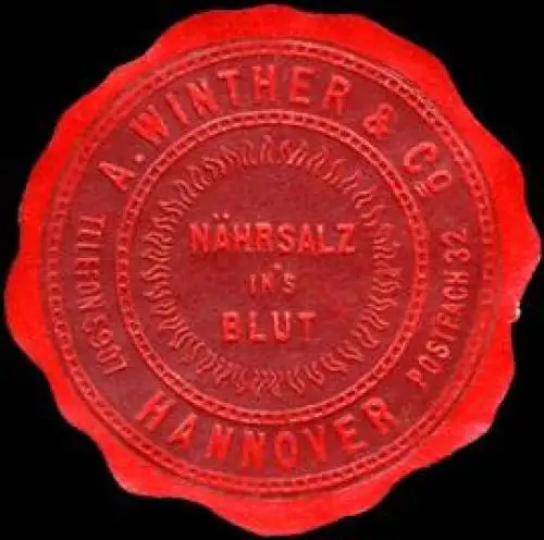 Nährsalz ins Blut, rot, geprägt, Größe/Zustand: 5 , guter Zustand, Original Verschluss-Siegelmarke aus Papier welche früher von Behörden, Firmen etc. zum Versiegeln der Briefe benutzt wurden