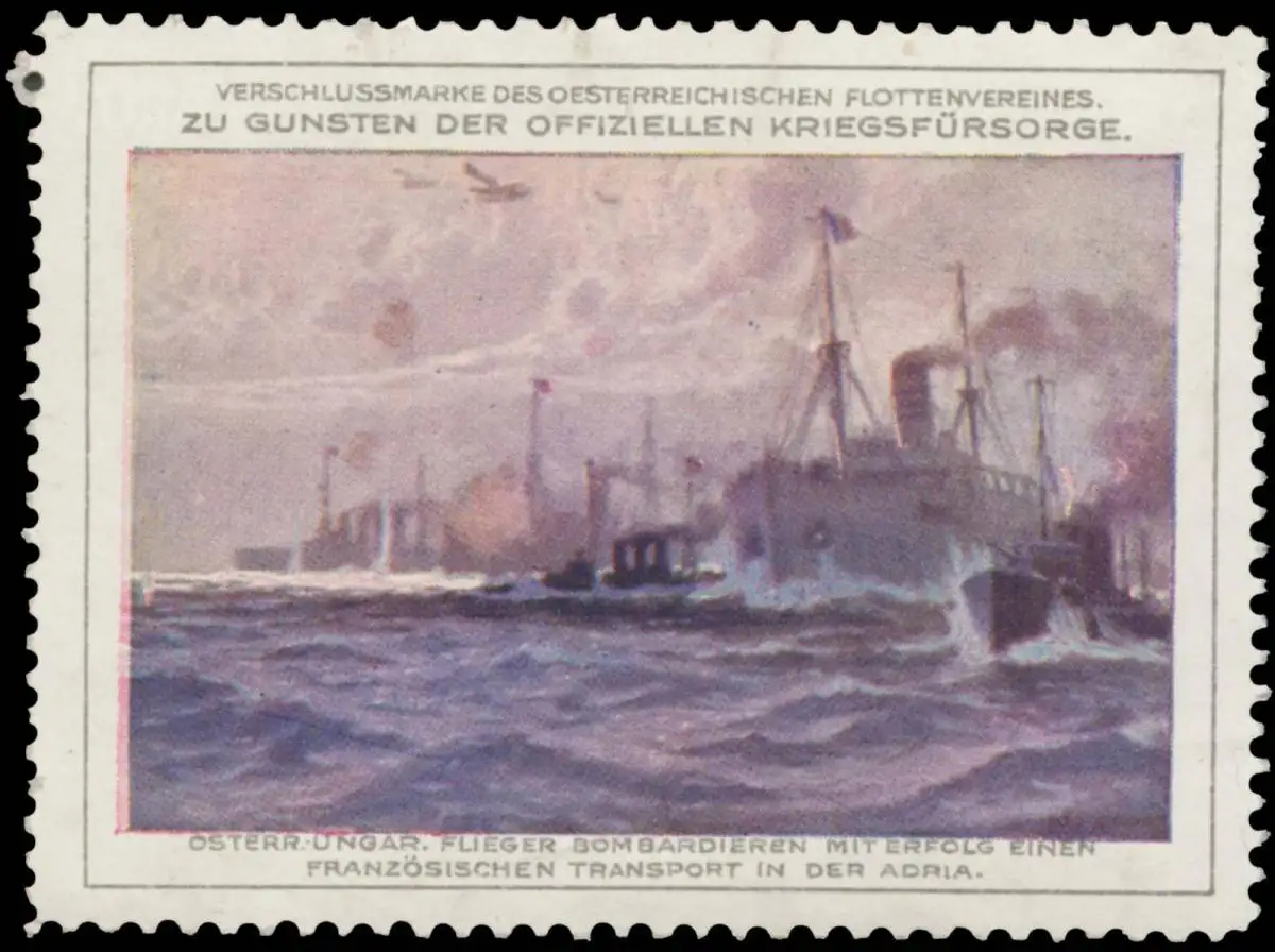 Österr. Ungar. Flieger bombadiert einen französischen Transport in der Adria