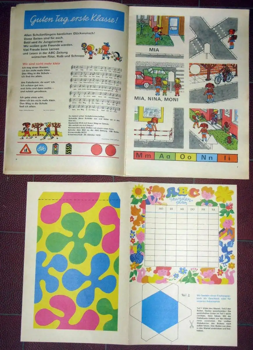 guter bis sehr guter Zustand, geringe Gebrauchs- und Alterungsspuren: mit wenigen kleinen Blessuren an Ecken und Rändern - Rückseite mit altem Poststempel - Umschlag und Seiten teils etwas eselsohrig, Zeitschrift für Pioniere und Schüler der 1.-3. Klasse mit Bastelbogen: Stundenplan / Tischpapierkorb als Beilage mit Illustrationen von Reinhard Link, Inge Gürtzig, Hans Betcke, Ingeborg Meyer-Rey, Klaus Vonderwerth, Erich Gürtzig, Softcover, ca. 23,5 x 33,5, 16 Seiten mit zahlreichen Bildern + Beilage