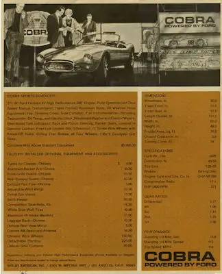 AC Cobra Prospekt 1960er Jahre
