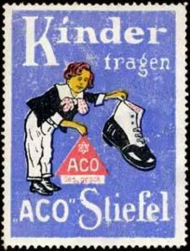 Kinder tragen ACO Siefel. Schuhe, Größe/Zustand: 6x4 , guter Zustand, Original alte Reklamemarke die seinerzeit für die Werbung benutzt wurde