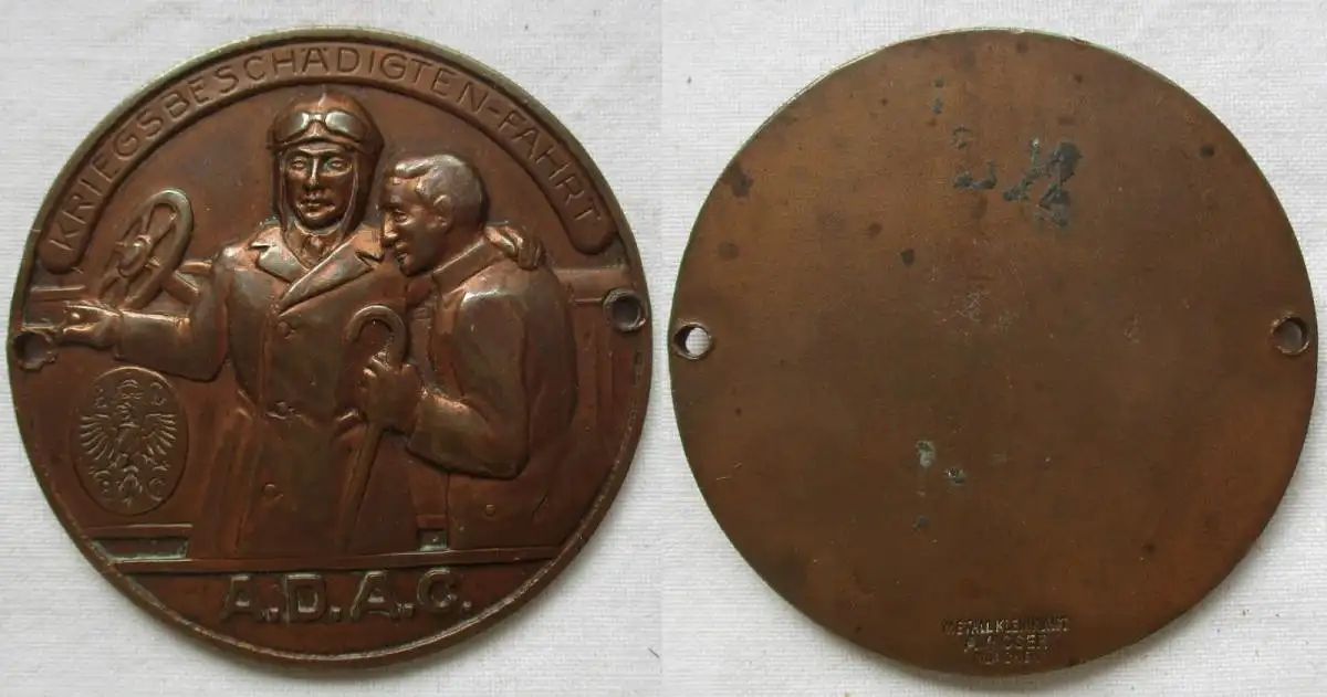 Durchmesser 50,6 mm, Gewicht 46,4 Gramm, Hersteller Metall Kleinkunst A.Moser München, mit 2 Befestigungslöchern, sehr schöne fast vorzügliche Erhaltung siehe Bild,