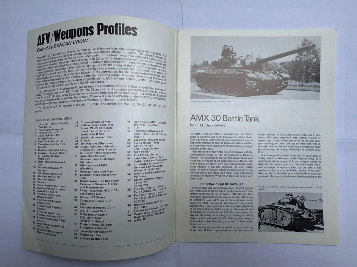 AFV AMX-30 Battle Tank AFV Weapons Profile Ogorkiewicz, R. M. Profile Publicati