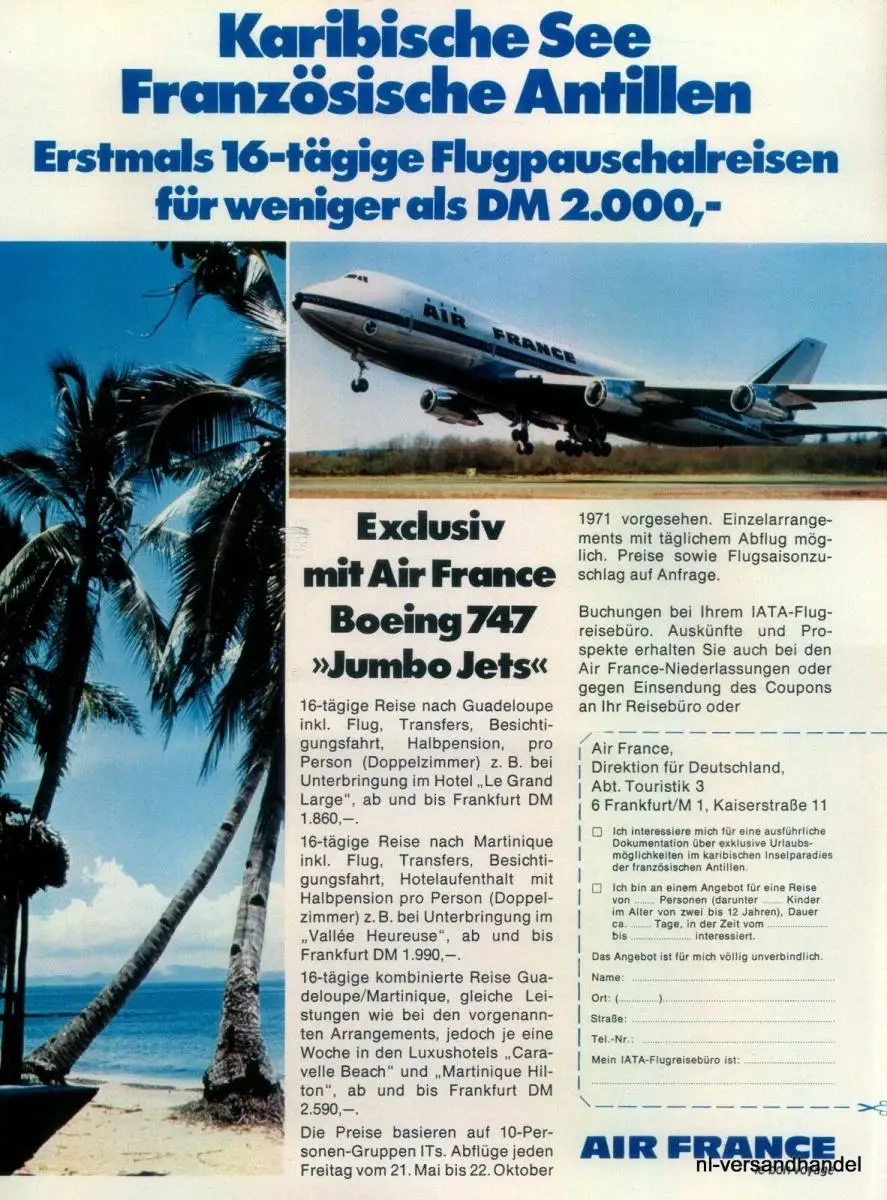 AIR FRANCE-2000DM-1971-Reklame-Werbung-genuine Advert-La publicité-nl-Versand