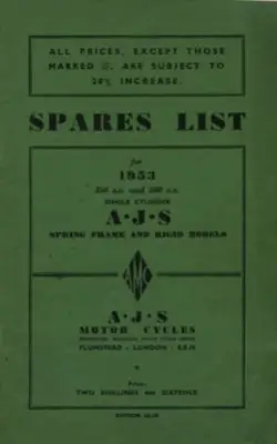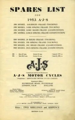 AJS 350 500 cc Single cyclinder Ersatzteilliste 1953