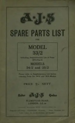 AJS Model 33/2 Ersatzteilliste 1933/35