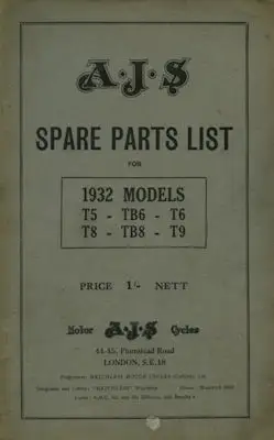 AJS T5 TB6 T6 T8 TB8 T9 Ersatzteilliste 1932